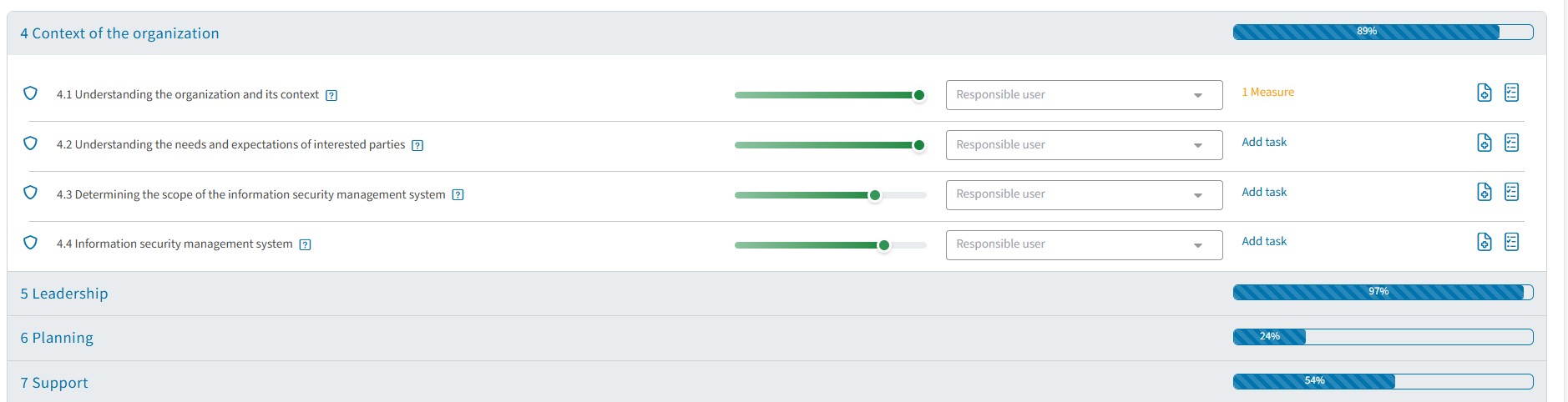 For the successful implementation of your ISMS, involving all departments is crucial. Assign tasks and measures with fixed deadlines directly to the responsible employees, who can access their personal task lists at any time. This keeps the project status transparent and ensures that everyone remains actively engaged in the process.