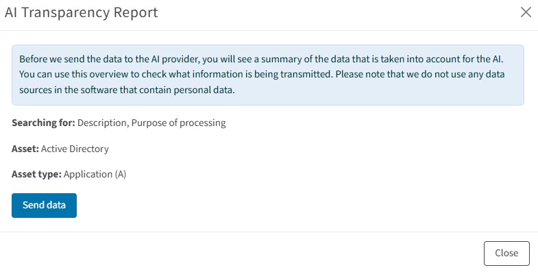 Capture and manage your information assets centrally in a clear and structured asset inventory. Use practical templates or data imports for quick entry. With the integrated workflow, you can easily add new assets and report changes. The intuitive, multilingual asset inventory gives you full visibility of all information assets at any time while minimizing administrative effort.